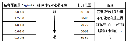 機具對不同作業(yè)條件的適應程度(玉米秸稈還田覆蓋量表)