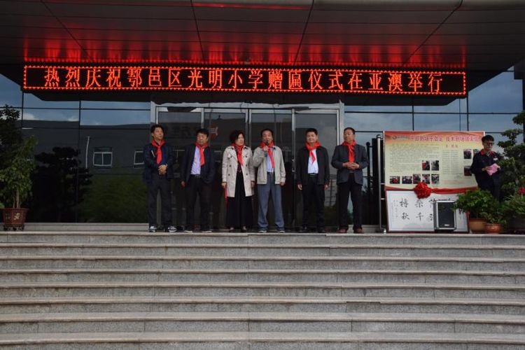 2018年4月28日上午10時,西安市鄠邑區(qū)光明小學為亞澳農(nóng)機總部贈匾儀式順利舉行,鄠邑區(qū)政府辦副主任、機關事務管理局局長滑益平,區(qū)經(jīng)貿局副局長趙曉利,區(qū)中小企業(yè)服務中心趙建威,區(qū)光明小學校長馬文博、副校長張忠偉、王冰榮及老師、同學們,以及亞澳農(nóng)機董事長史可器、總經(jīng)理史森強、副總經(jīng)理史炳直等亞澳全體管理干部及黨員、工會委員、職工代表等參加活動。局副局長趙曉  百年大計、教育為本。鄠邑區(qū)光明小學是區(qū)重點小學,近年來在各級的關心支持下,教學質量、辦學條件不斷得到改善、學校建設在不斷的加強。