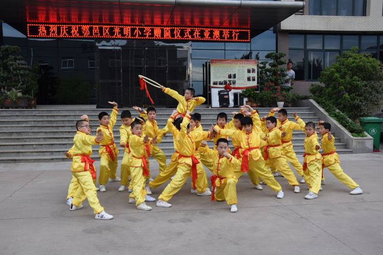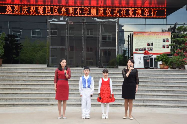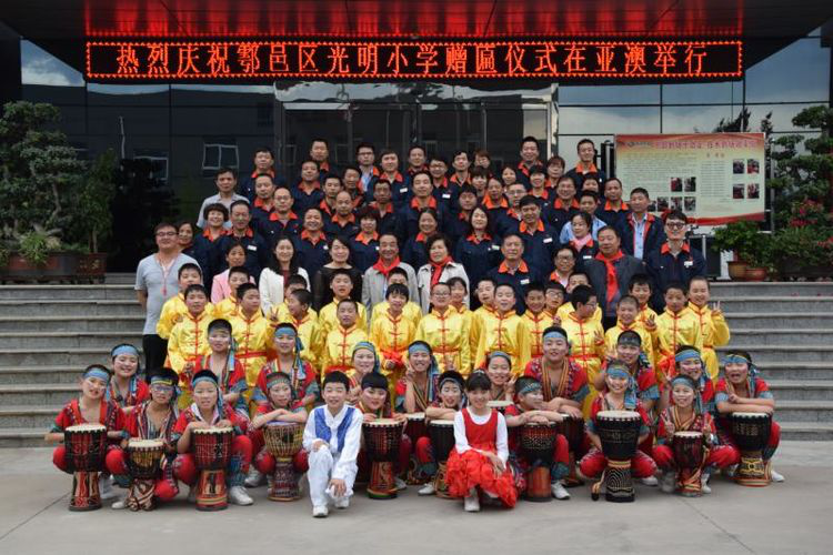 亞澳董事長史可器代表公司接受牌匾,表示幫學助學是中華民族的傳統(tǒng)美德,是培育人才的希望工程,當然也是企業(yè)家們所開展的一項看得見、摸得著的民心工程,會繼續(xù)堅持扶貧幫困,愛心助學。光明小學的師生們還表演了精彩的節(jié)目:中華武術、激情手鼓《漂亮寶貝+巴伽女孩》,詩朗誦《盛世亞澳》!