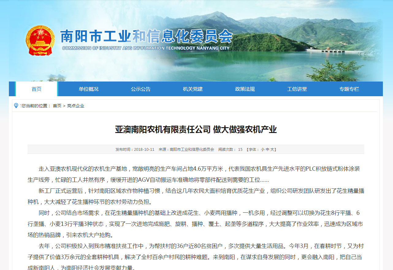 市工信委專題報(bào)道亞澳農(nóng)機(jī) 做大做強(qiáng)農(nóng)機(jī)產(chǎn)業(yè)