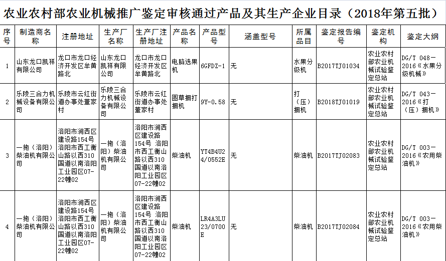 根據(jù)農(nóng)業(yè)部農(nóng)業(yè)機(jī)械試驗(yàn)鑒定總站2018年第五批部級(jí)農(nóng)機(jī)推廣鑒定結(jié)果的公示,9個(gè)型號(hào)的機(jī)型全部通過(guò)農(nóng)機(jī)鑒定總站的批準(zhǔn)。