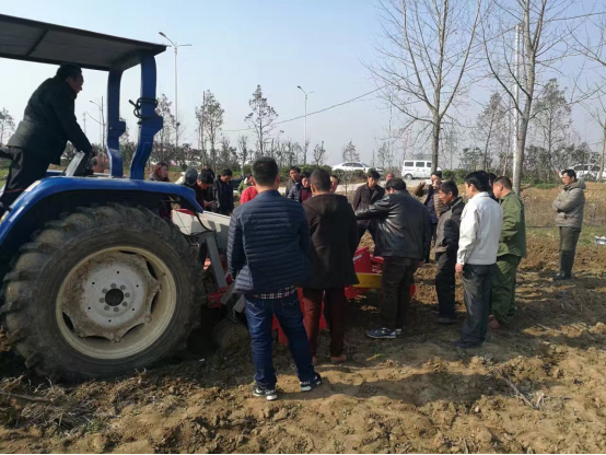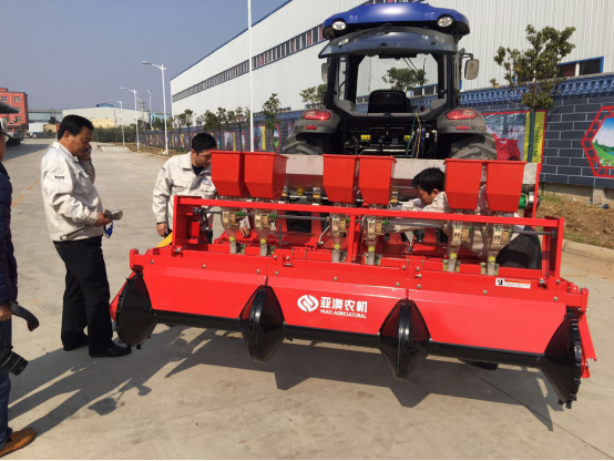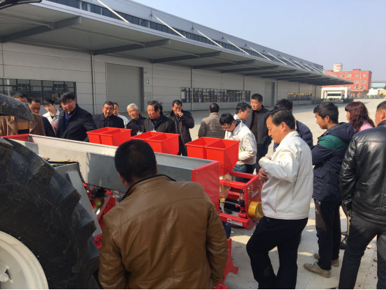現(xiàn)場(chǎng)會(huì)上,亞澳專業(yè)技術(shù)人員及銷售經(jīng)理對(duì)我廠新研發(fā)的花生精量播種機(jī)做了詳細(xì)介紹,各鄉(xiāng)鎮(zhèn)社員及各站站長(zhǎng)針對(duì)花生種植技術(shù)、施肥方法和機(jī)械化播種等方面做了詳細(xì)講解。隨后,60名用戶和農(nóng)技人員一同觀摩了機(jī)械化播種演示。