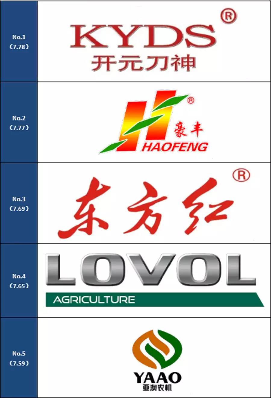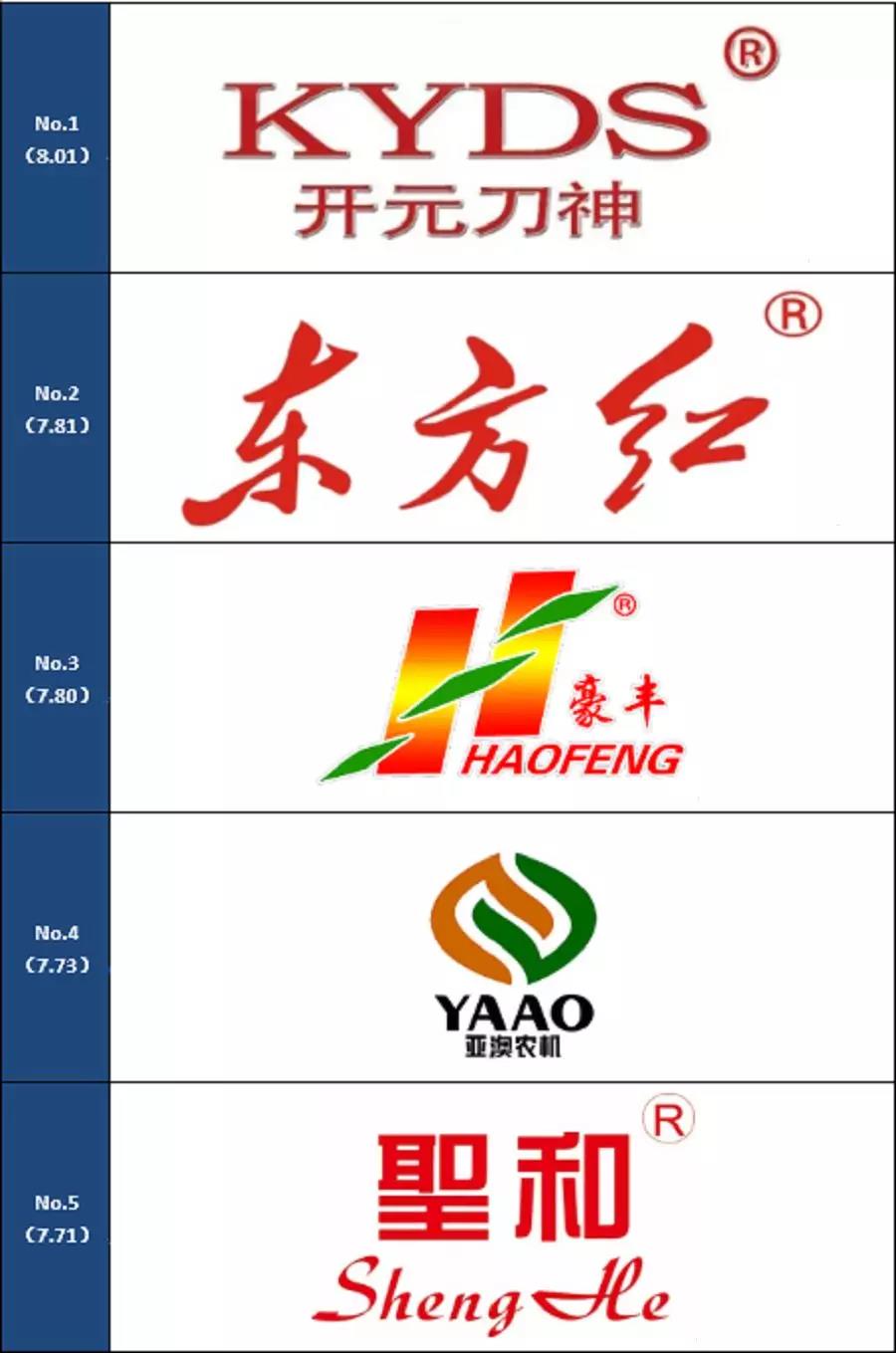 通過上面的一系列計算,入選旋耕機滿意品牌的是:開元刀神、豪豐、東方紅、亞澳、圣和。